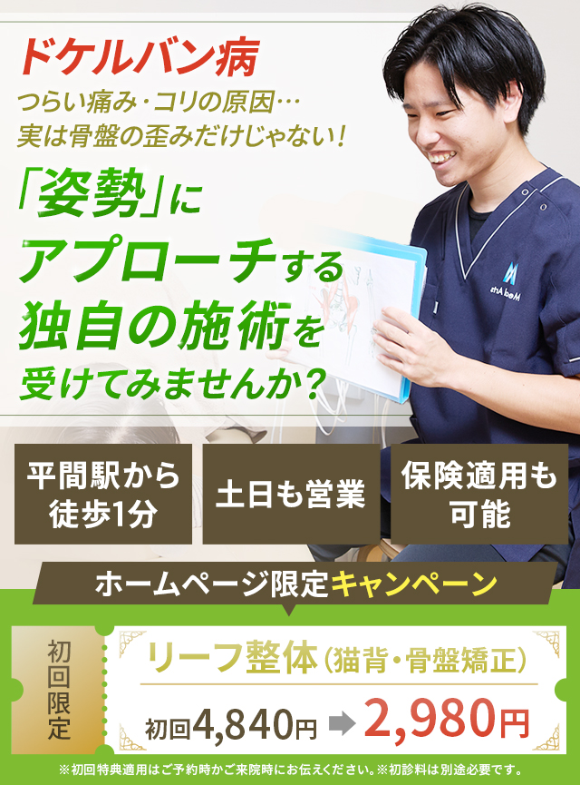 ひらま駅前整骨院でのドケルバン病に対するアプローチ